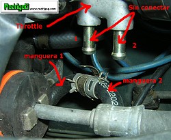 Bypass agua caliente: Consiste en retirar las 2 mangueras de agua caliente del throttle, para ello se debe contar con una pequeña tubería de cobre para hacer pasar el agua de una manguera a otra. Esto contribuye para que el throttle se mantenga más frio y no caliente el aire de admisión.