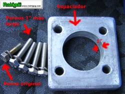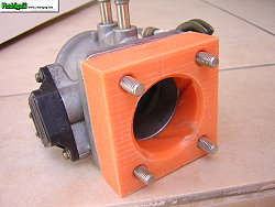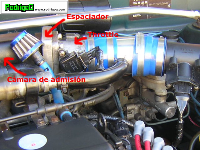 Throttle body spacer: El espaciador es un flange de aluminio de una 1" de espesor el cual aumenta el espacio de la cámara de admisión, produce el efecto pulmón usado en instrumentación, dando más torque en bajas revoluciones del motor, rápida aceleración, algo de ahorro de combustible.