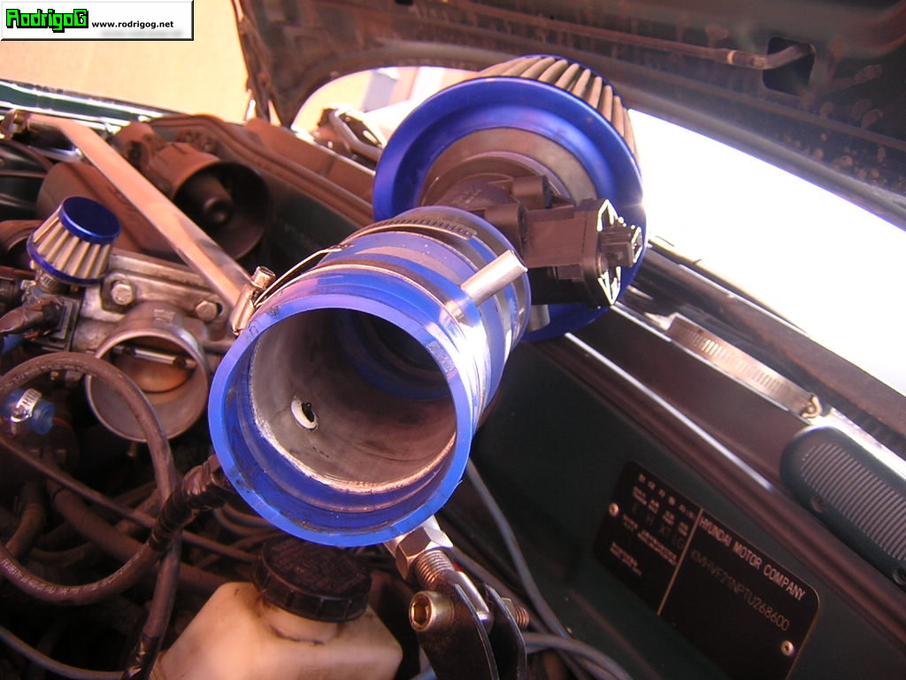 Después de probar muchas configuraciones en la admisión, hasta varios modelos de los llamados "electric supercharger"... la configuración actual instalada en el Accent '97 es la siguiente.