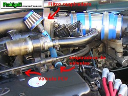 Filtro repiradero de válvulas: Originalmente el respiradero del Hyundai Accent '97 tiene una manguera conectada desde la tapa de válvulas hasta la parte de abajo del throttle, su función es respirar aire fresco pero además elimina gases aceitosos y calientes cuando la válvula PCV no se a activado, la PCV sólo se activa mecánicamente por la succión de la cámara de admisión. Cuando se maneja en bajas rpm la PCV no libera esos gases y los libera por el respiradero, esto produce una contaminación aceitosa en el cuerpo de aceleración, esa zona debe se como espejo libre de contaminación para el correcto flujo del aire. La solución para esto es sacar la conexión de la manguera del throttle y habilitar mediante una pequeña tubería un filtrito, ojalá no sea del mismo material del cónico que tiene fibra, mejor es que sea de malla metálica para que soporte mejor la temperatura. El hoyo del throttle se tapa. ¿Que beneficios tengo con esto? Que ahoras combustible, menos contaminación de gases y no calientas el aire de admisión, mejora la aceleración. La válvula PCV debe estar conectada ya que el motor aprovecha esos gases directos en la cámara de admisión con altas revoluciones. Es muy importante que el filtro quede sobre el nivel de la tapa de válvulas, de lo contrario se contamina con aceite.