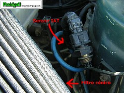 Filtro cónico: Filtro de aire con mucha menor resistencia a paso del aire que el tradicional filtro de papel. Es muy importante que la ubicación sea lejana a fuentes de calor como el radiador y headers.